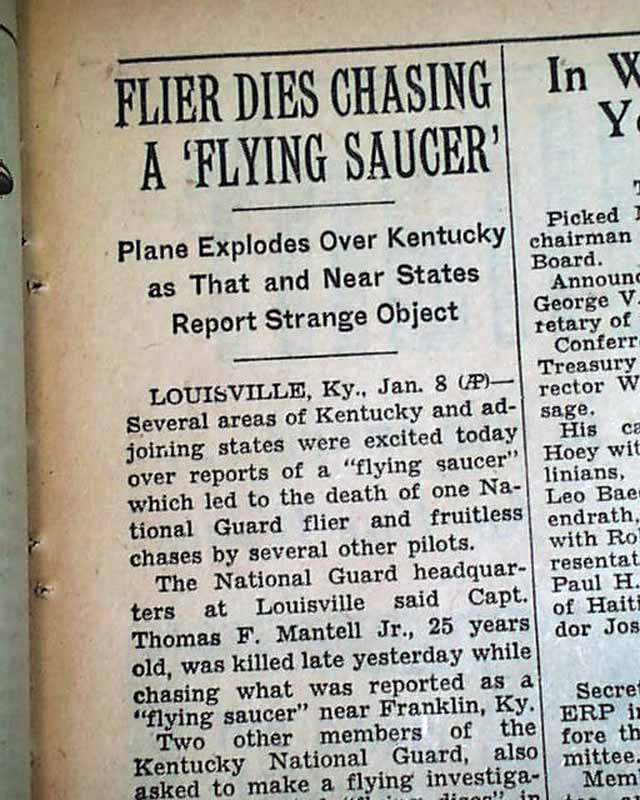 The Mantell incident was reported by newspapers around the nation, and received significant press attention.
