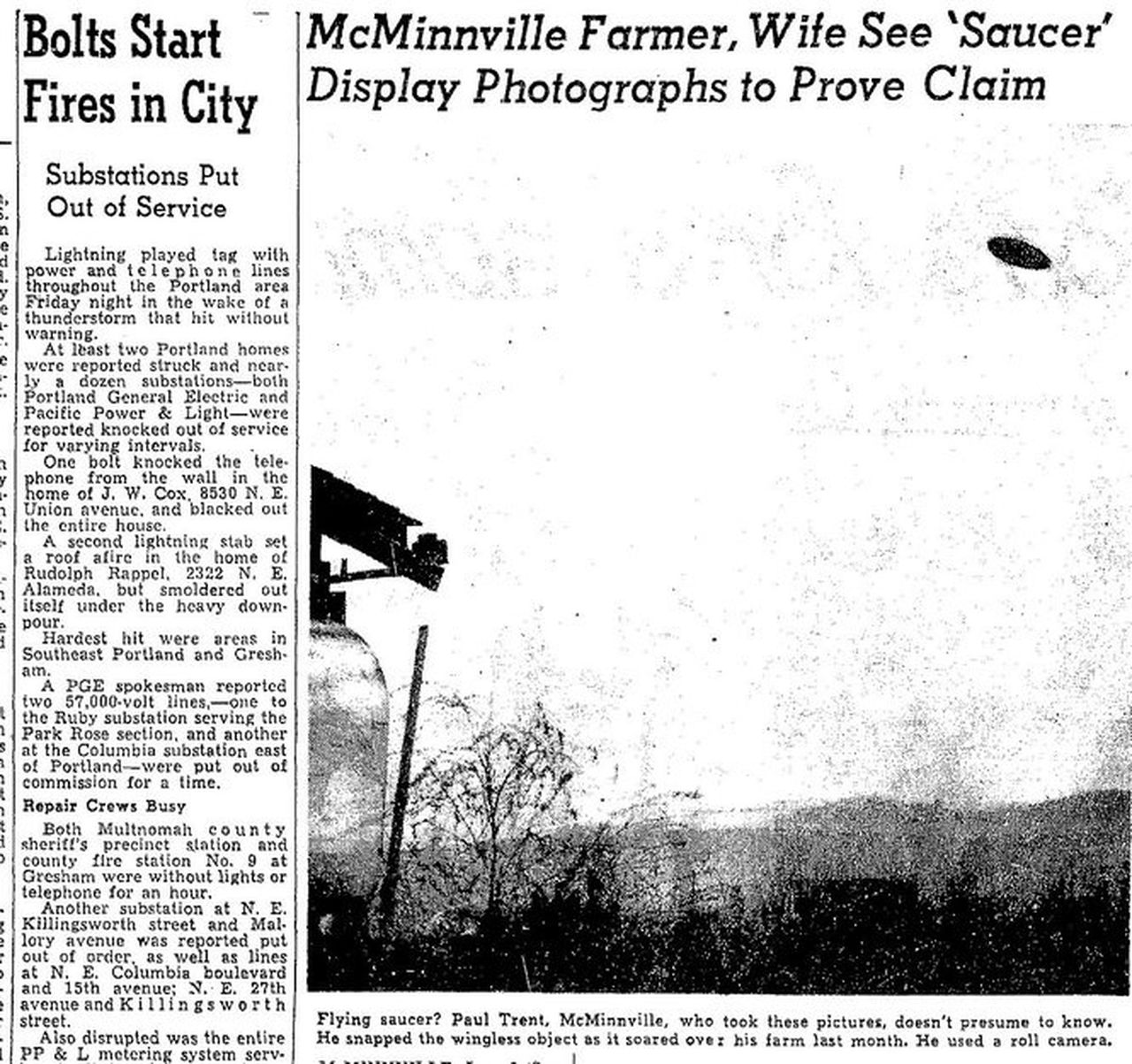 The McMinnville Telephone Register and The Oregonian published the images in June of 1950, a month after Paul Trent took them. (He had to finish off the roll before getting the images developed. The final three photos he took were of a family picnic on Mother’s Day.)